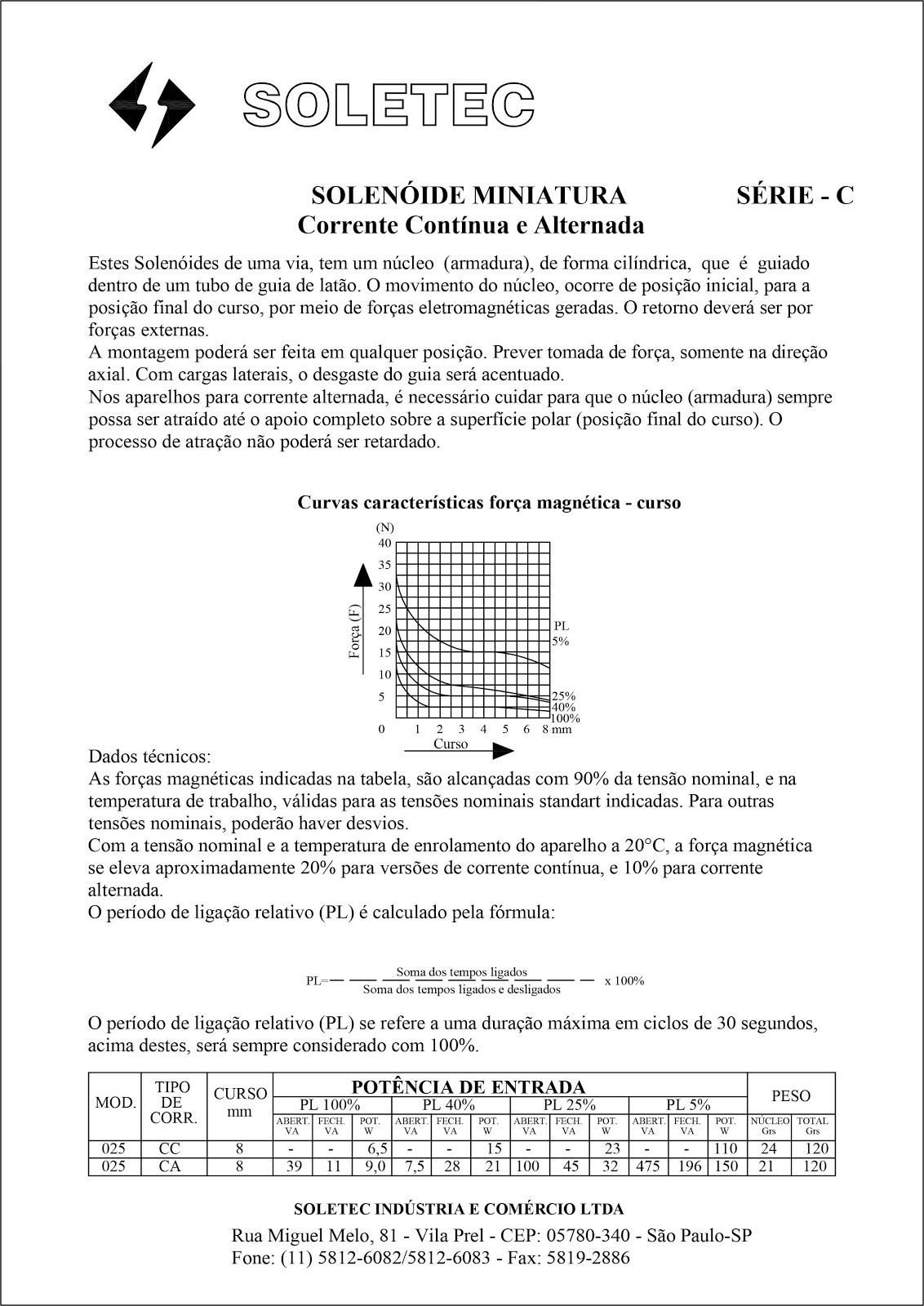 Solenóide Miniatura - Série C